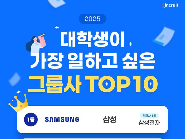2025년 대학생들이 뽑은 가장 일하고 싶은 그룹사는 `삼성`이었다. 제공: 인크루트