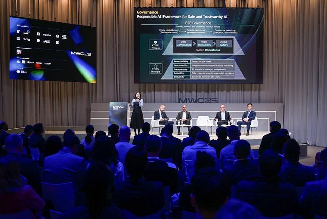 KT AI Future Lab장 배순민 상무(CRAIO)는 4일 오전 10시(현지시간)에 스페인 바르셀로나 MWC25 행사장에서 열린 `윤리적 인공지능 구축(Building Ethical Intelligence)` 세션에 패널로 참여했다.