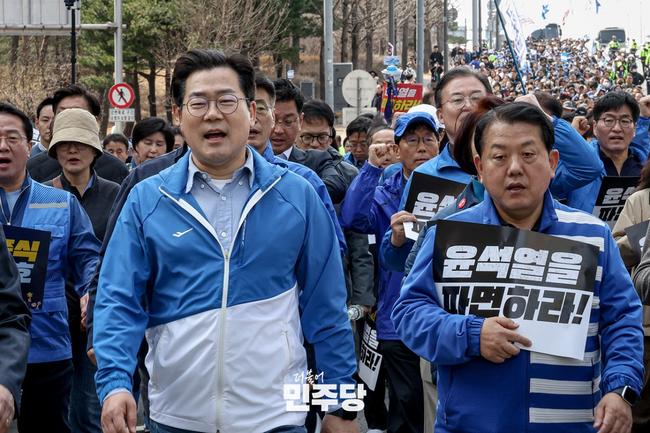 박찬대 더불어민주당 원내대표는 3월 16일 국회 앞에서 열린 ‘윤석열 탄핵 촉구 도보행진’에서 “헌법재판소는 이번 주 내로 윤석열 탄핵심판 선고를 내려야 한다”고 촉구했다.
